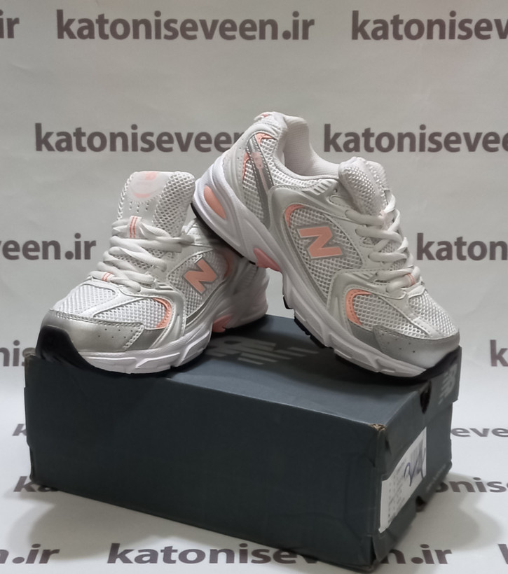 مدل سفید گلبهای از کتونی نیو بالانس ۵۳۰، ظاهری شیک و خاص برای استایل اسپرت. اصلی، وارداتی، سبک و مناسب استفاده طولانیمدت.