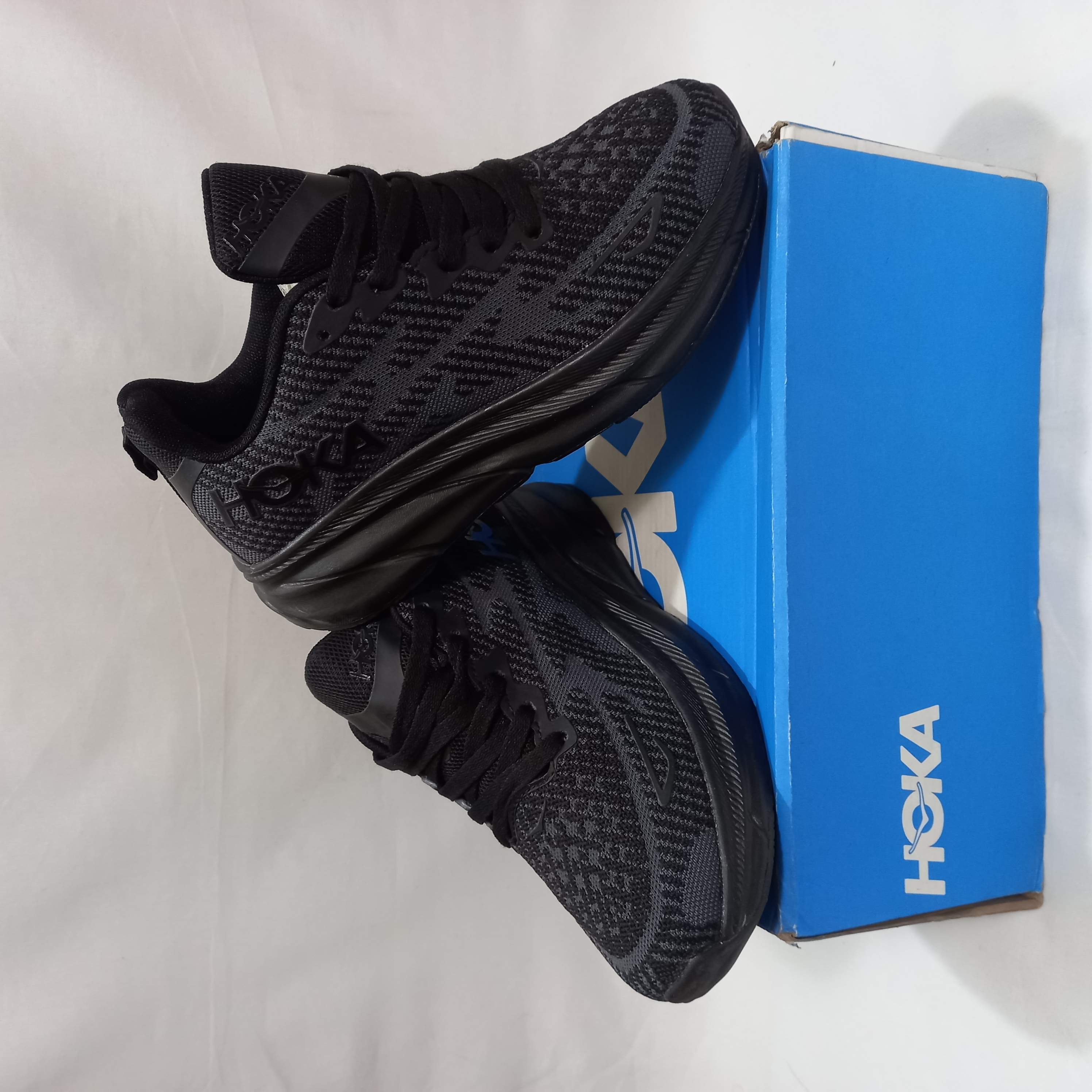 نمای کلی کتونی هوکا کلیفتون 9 رنگ مشکی وارداتی سایزبندی 39 تا 45